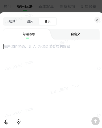 通过【AI音乐】功能,你只需讲述一个故事或表达一种情绪,比如:“我想写一首关于异乡人回老家过年的歌,有点思念,有点温暖,副歌要有希望的感觉”,AI便会自动生成完整的歌词、旋律、编曲,甚至提供人声演唱版本。